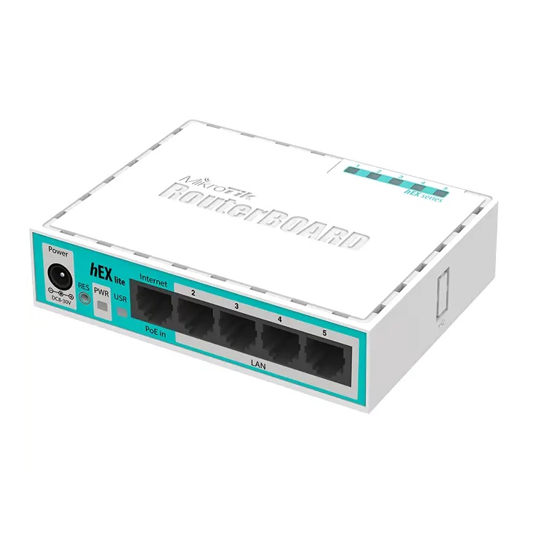 | hEX lite RB750r2 | 5 x 10/100 | None | QCA9533 850 MHz | No | Small wired home/office networks with basic routing needs |
